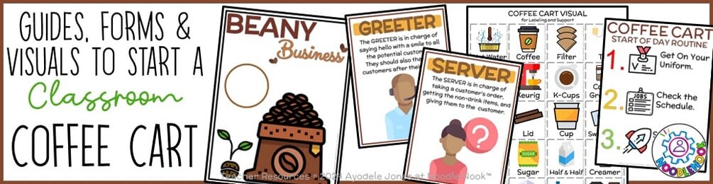 Discover a fun, functional, and profitable vocational training activity for your students in Life Skills, Occupational Training, or Vocational Programs with our Coffee Cart COMPLETE Setup Guide and Essential Printables. Designed specifically for special education teachers in K12, this comprehensive resource will equip you with everything you need to set up a successful classroom coffee shop enterprise.
