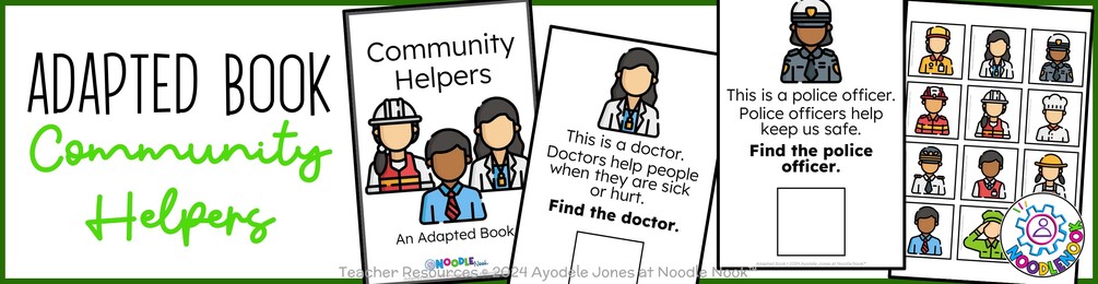 Meta Description: Engage special education and early elementary students with "Community Helpers," a 12-page adapted book. Includes matching activities with text and non-text support. Fun and educational!