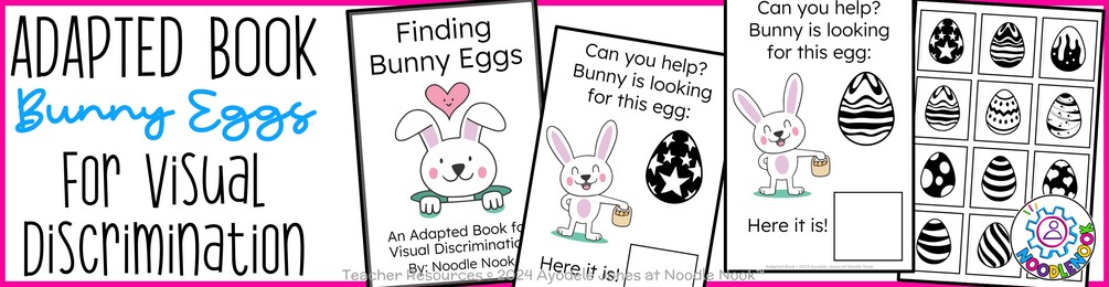 "Bunny Eggs - An Adapted Book for Visual Discrimination" is an essential resource for early childhood classrooms, autism units, special education settings, and homeschool environments. Enrich your teaching toolkit with this delightful and functional book that students will love!